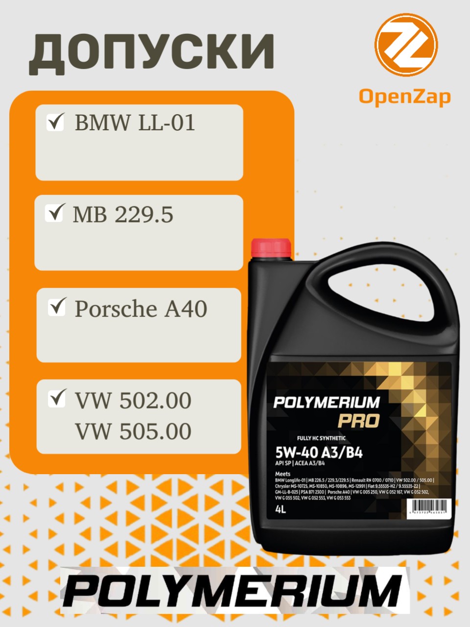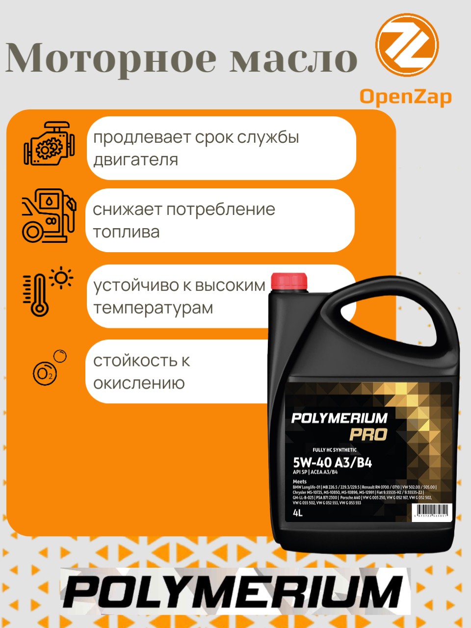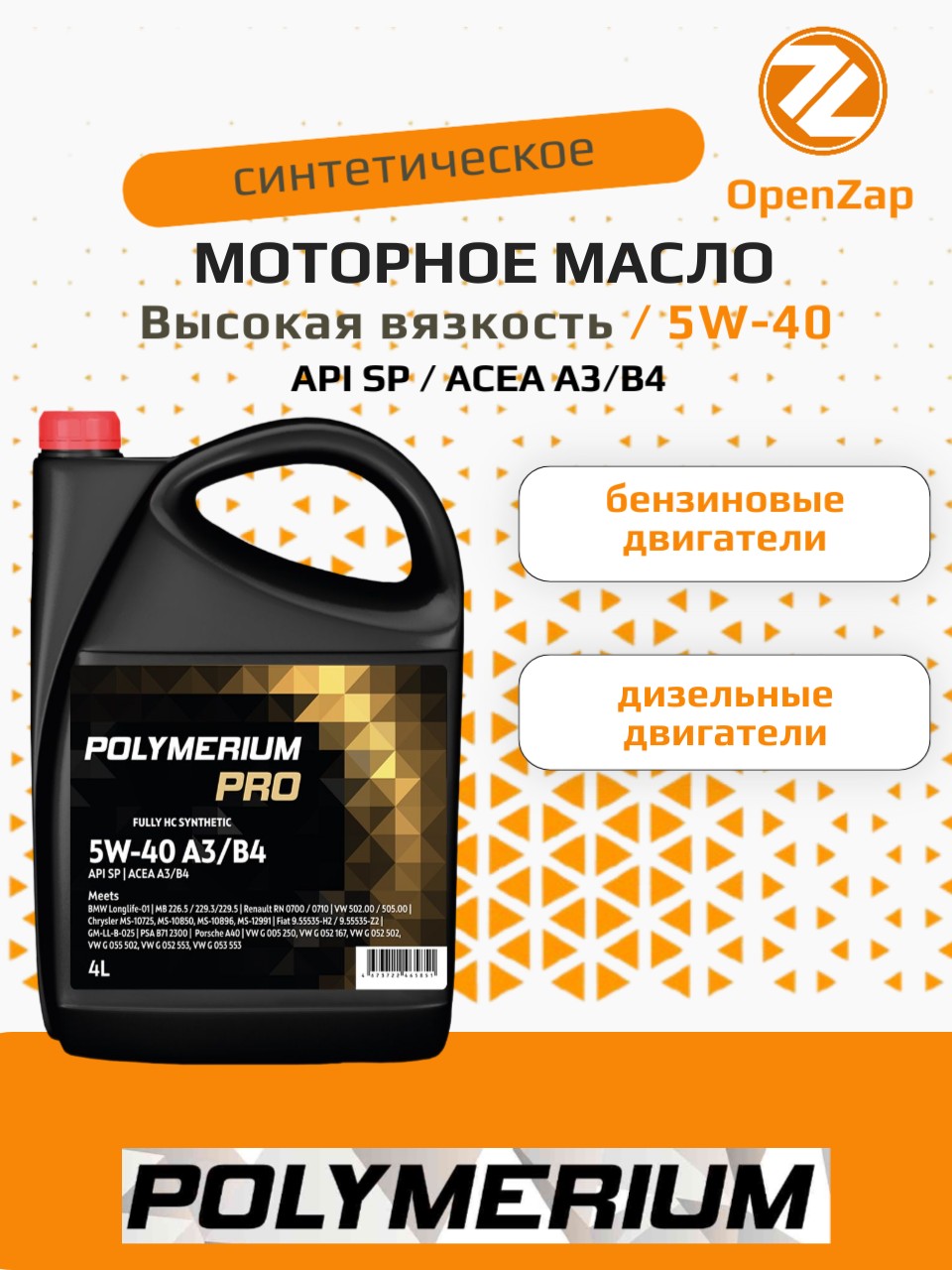 Синтетическое моторное масло PRO 5W-40, A3B4 4 л. POLYMERIUM plmp540a34