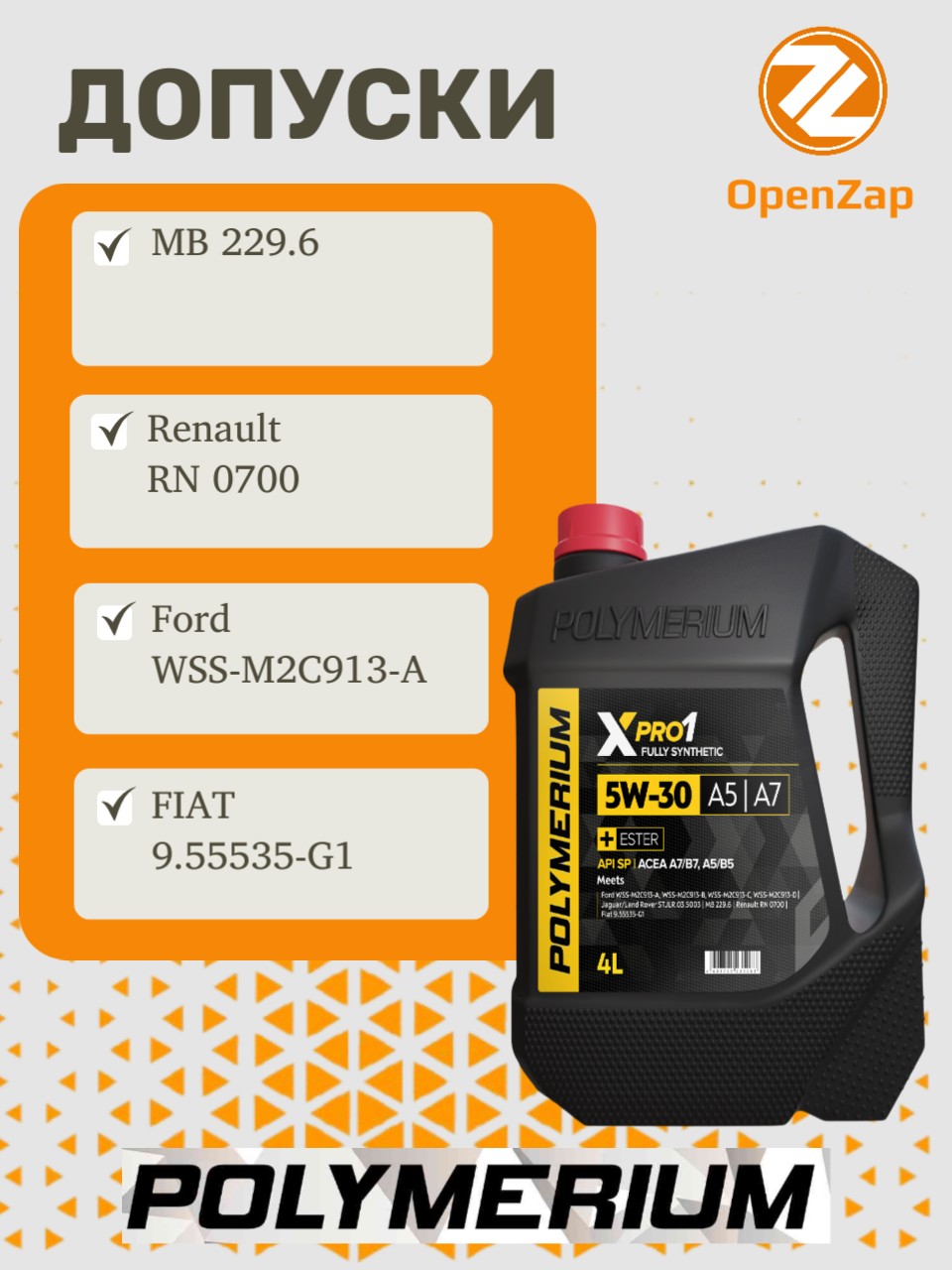 Синтетическое моторное масло XPRO1 5W-30, A5A7 4 л