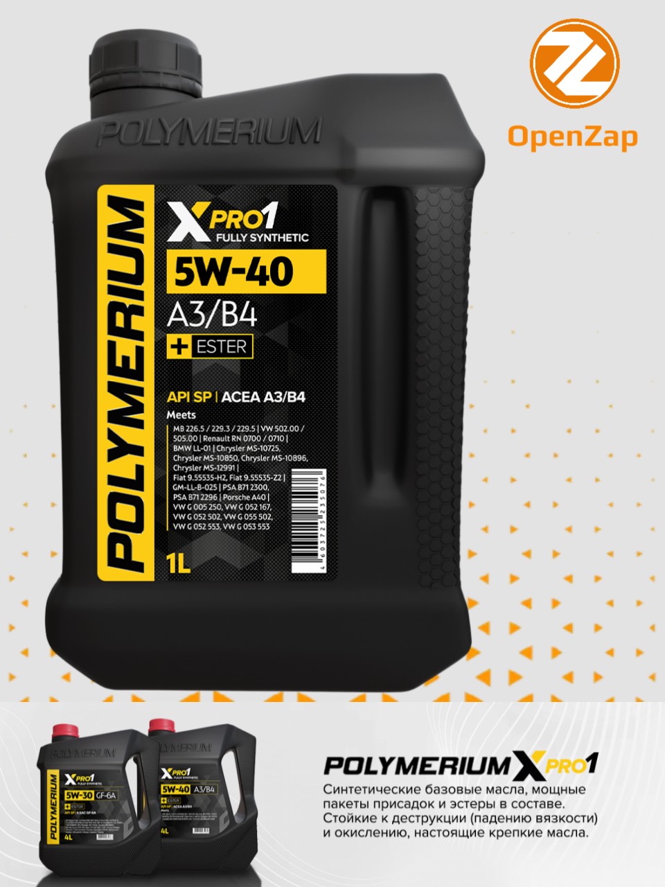 Синтетическое моторное масло XPRO1 5W-40, A3B4 1 л.