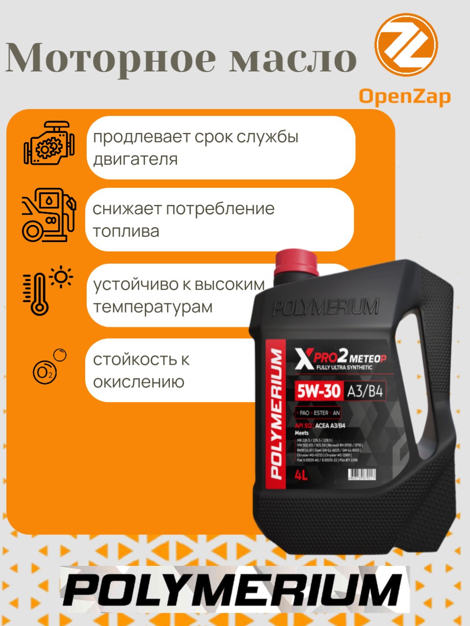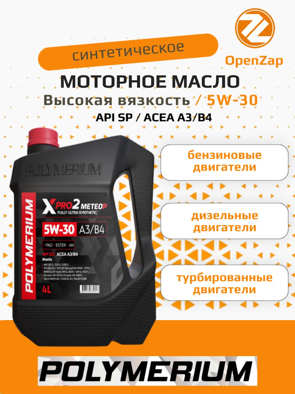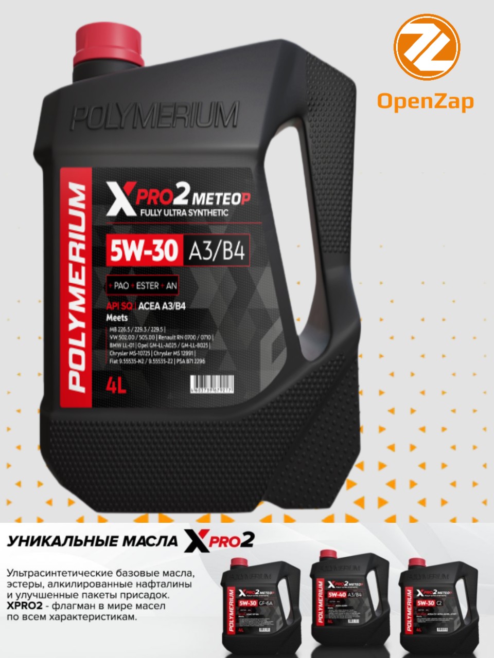 Синтетическое моторное масло XPRO2 5W-30, A3B4 4 л